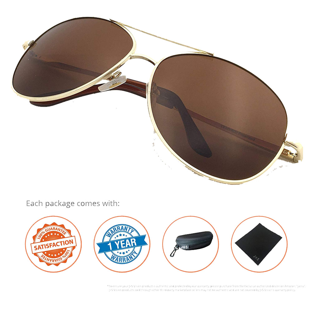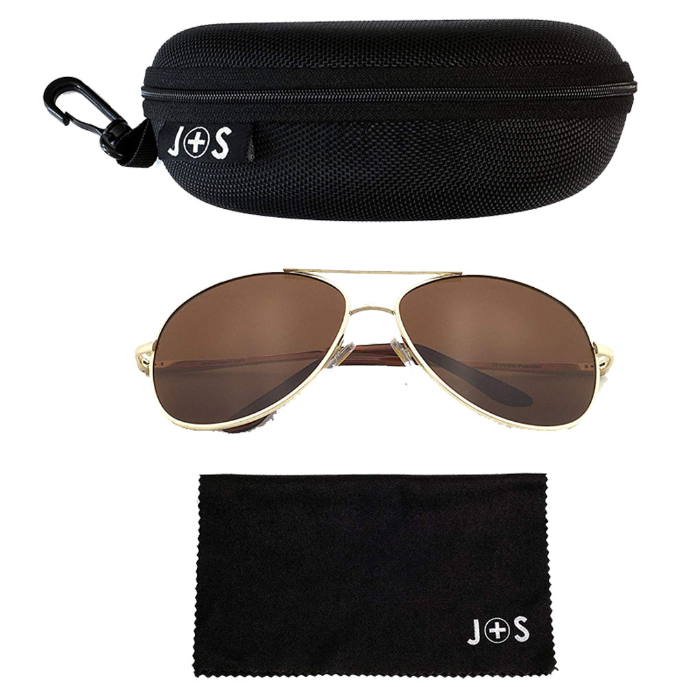 J+S Premium Military Style Classic Aviator Sunglasses, Polarized, 100% UV protection
